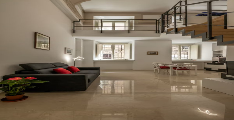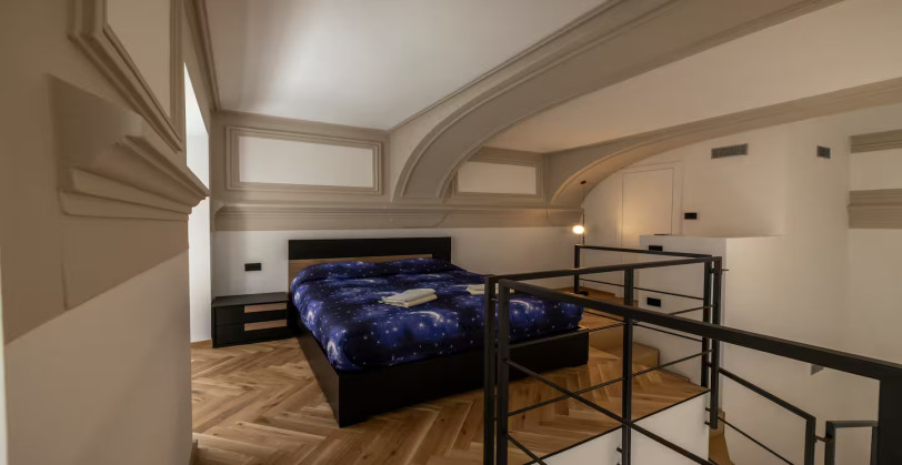 Casa Velò nasce dalla riqualificazione e ristrutturazione dello storico Palazzo d'Harcourt, di cui possiamo vedere il lascito tra gli alti soffitti e le pregiate volte. Infatti Primo Loft ha deciso lasciare inalterati questi segni di Storia.